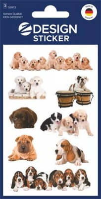Matrica, papír,  3 ív, 76x120 mm, AVERY ZWECKFORM, "Z-Design No.55972", kölyök kutyák
