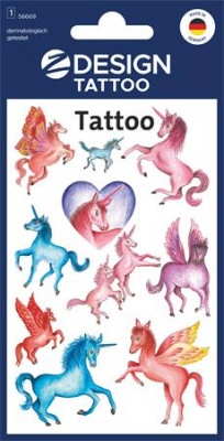 Matrica, tetoválás, 1 ív, 76x120 mm, AVERY ZWECKFORM, "Z-Design No.5669", unikornisok