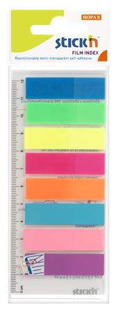 Jelölőcímke, műanyag, 8x25 lap, 45x12 mm, STICK N, neon színek